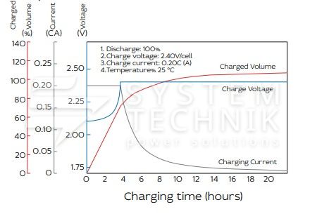 - Номинальное напряжение: 2В. Максимально допустимый ток заряда: 0,2C;