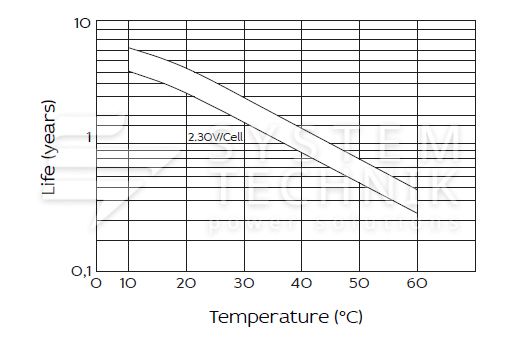 - Срок хранения без подзаряда: 6 мес. при 25°C;