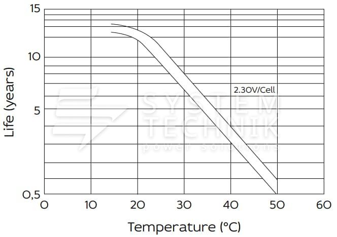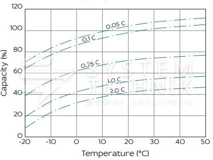 - Срок хранения без подзаряда: 6 мес. при 25°C;