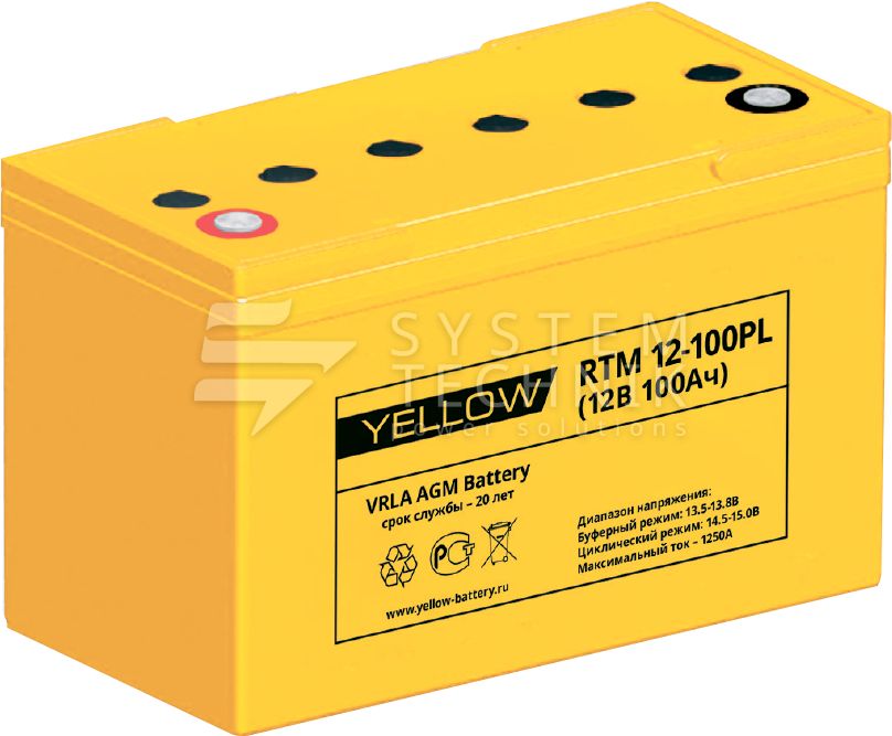 | Саморазряд | Батареи серии YELLOW RTM-PL могут храниться без подзаряда до 24 месяцев при 25°С |