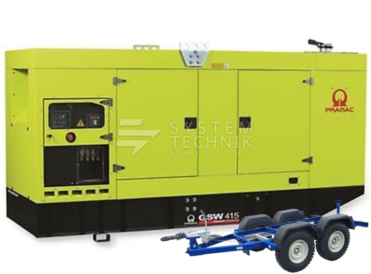 - Дизельный генератор Pramac GSW 415 V 400V В кожухе на прицепе