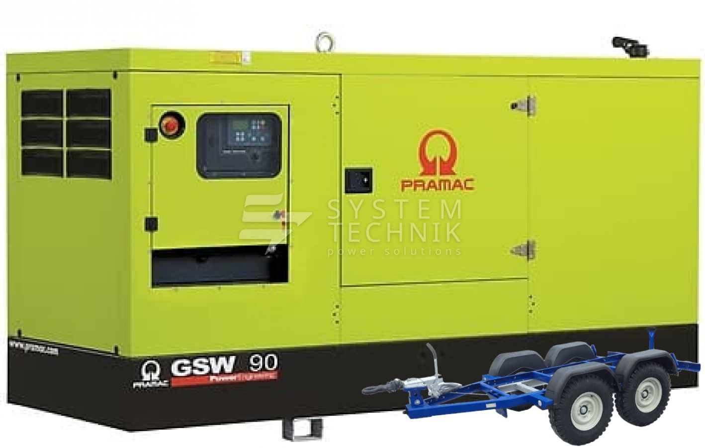 - Дизельный генератор Pramac GSW 90 I В кожухе на прицепе